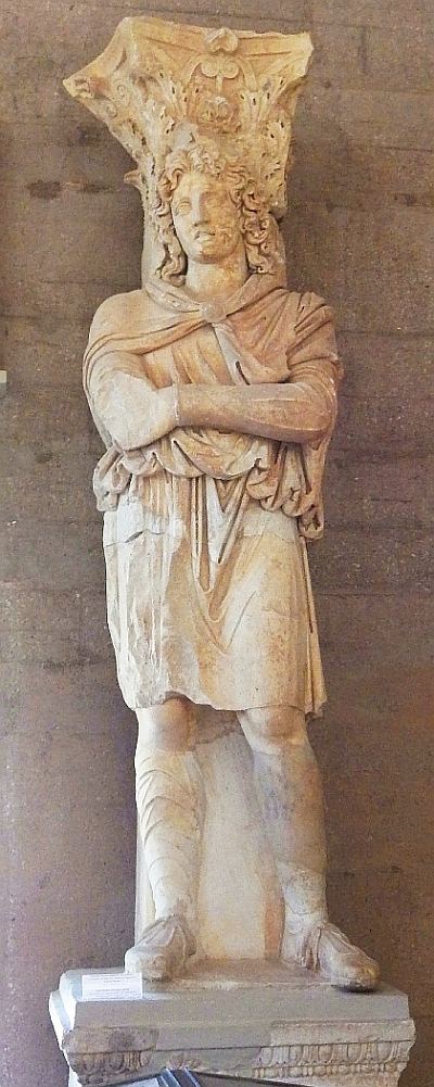 The image on the right is one of the imposing barbarians (Phyrigian Captives), larger than life slave statues that stood either side of the entrance doors of this Roman Corinth exhibition. They came from the archaeological site where they flanked a formal doorway of the North Basilica.