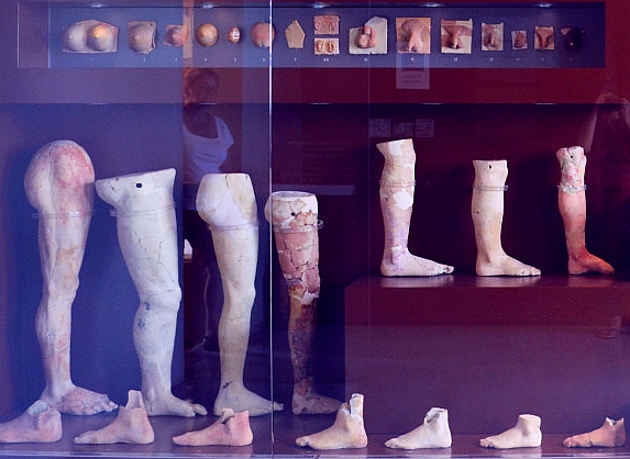 We finished our walk around this museum in the Asklepion room. Despite having visited a number of Asklepions the previous year, we still were very surprised by the votive offerings that were left in the ruins of this building, presumably by previous grateful clients. Perhaps we were more confused rather than surprised, by the offerings in the top row of the image below.