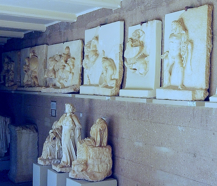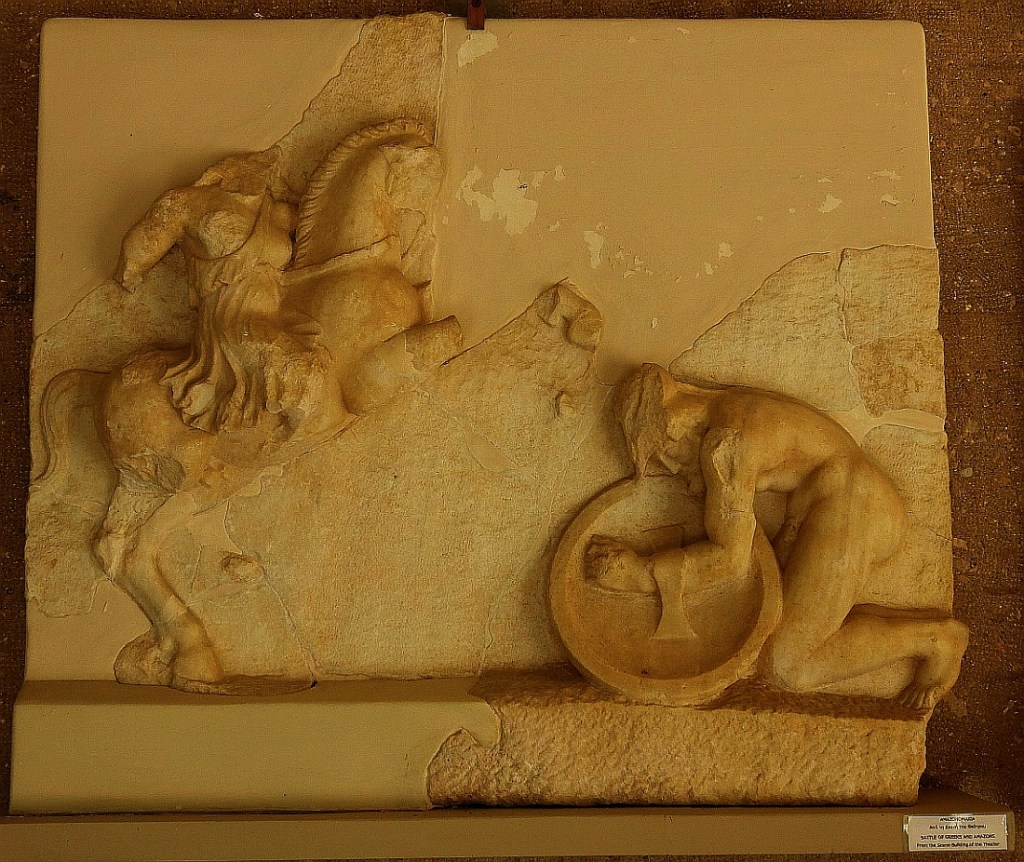 As mentioned previously, we were not able to visit the remnants of the theatre of Corinth but here in the Atrium were some amazing remnants from the façade of the theatre’s stage building. These consisted of 15 relief sculptures (metopes) depicting scenes from the Amazonomachy (fights between Greeks and Amazons), fights between the Gods and the Giants (Gigantomachy) and one of Hercules labours. They date to around 125-150 CE.