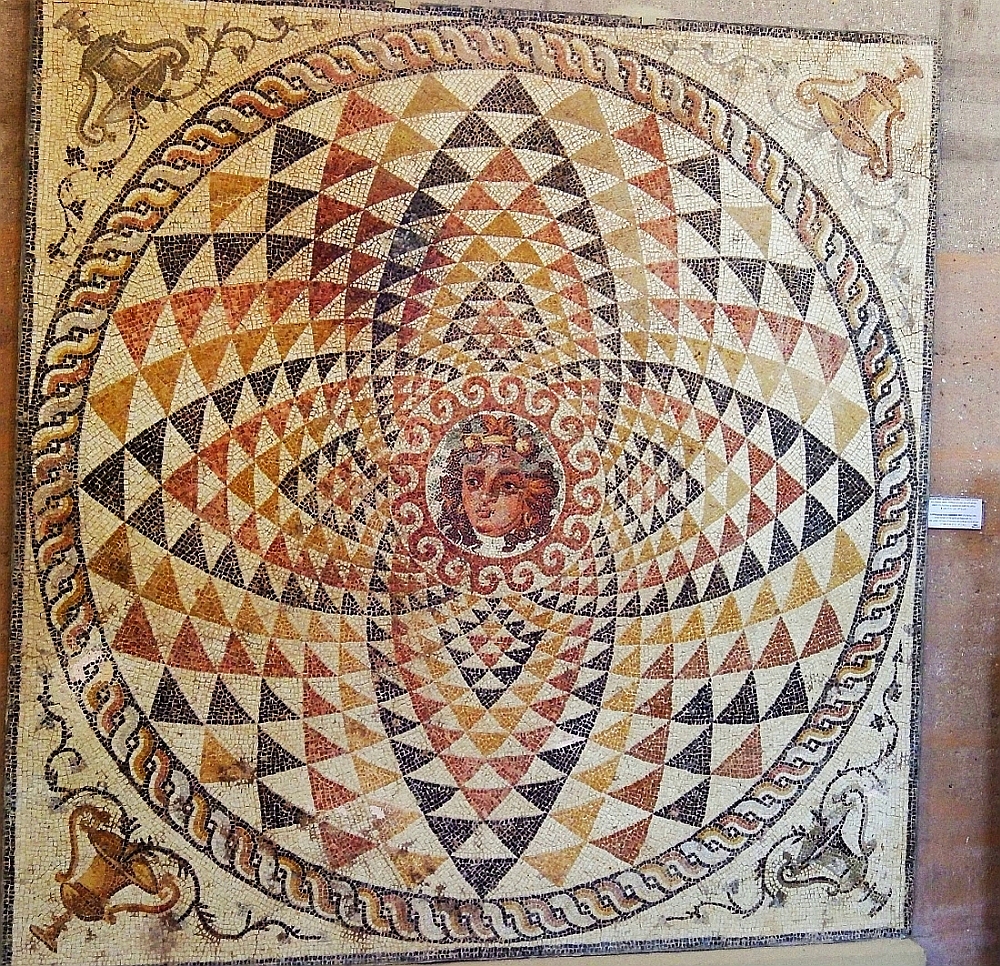 My favourite room of this museum was called ‘Corinth, a Roman Colony’ which was a long wide room that ran along one wall of the museum with the walls and the centre of the room jam-packed with the interesting Roman finds from the Corinth archaeological site and surrounding area. My favourite piece from the whole museum is of course the almost perfect mosaic taken from the floor of Roman villa of the ‘Colonia Laus Lulia Corinthiensis’, bearing the head of the God Dionysos, dated around 150-225 CE.