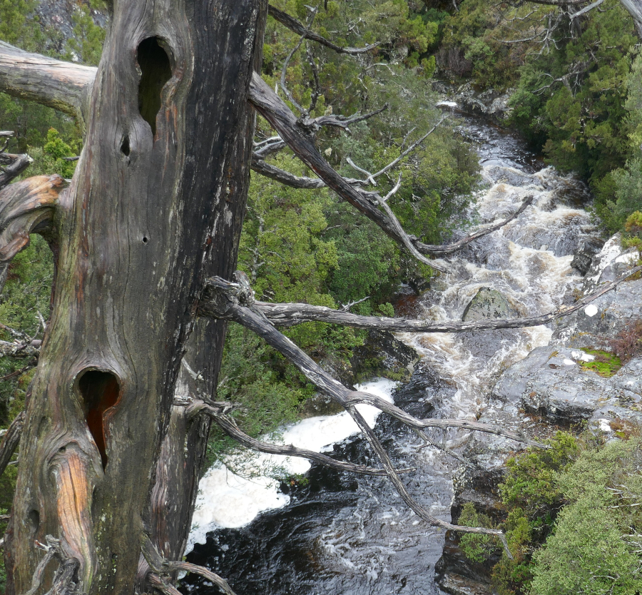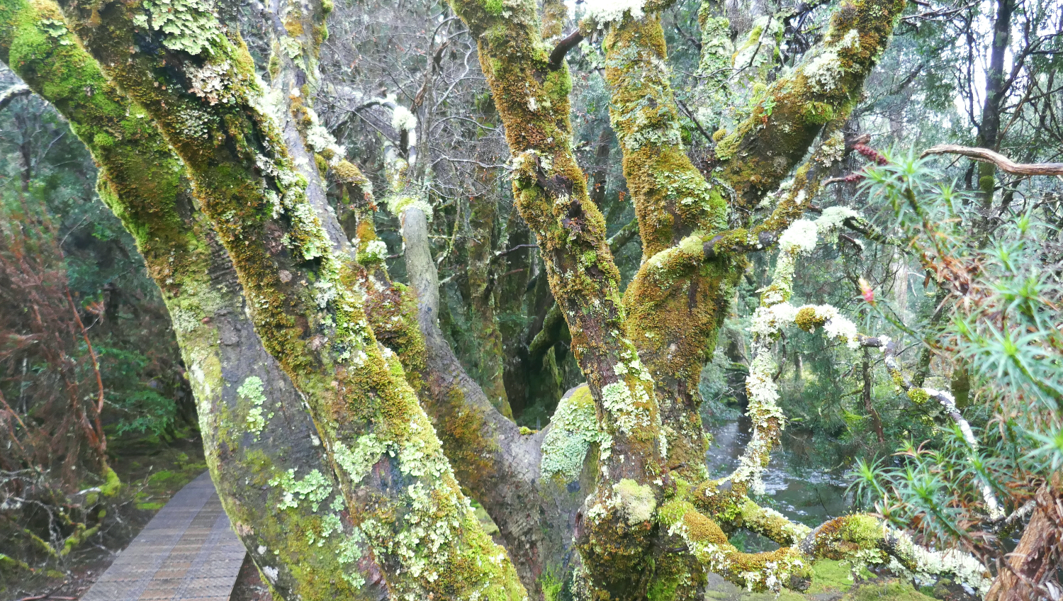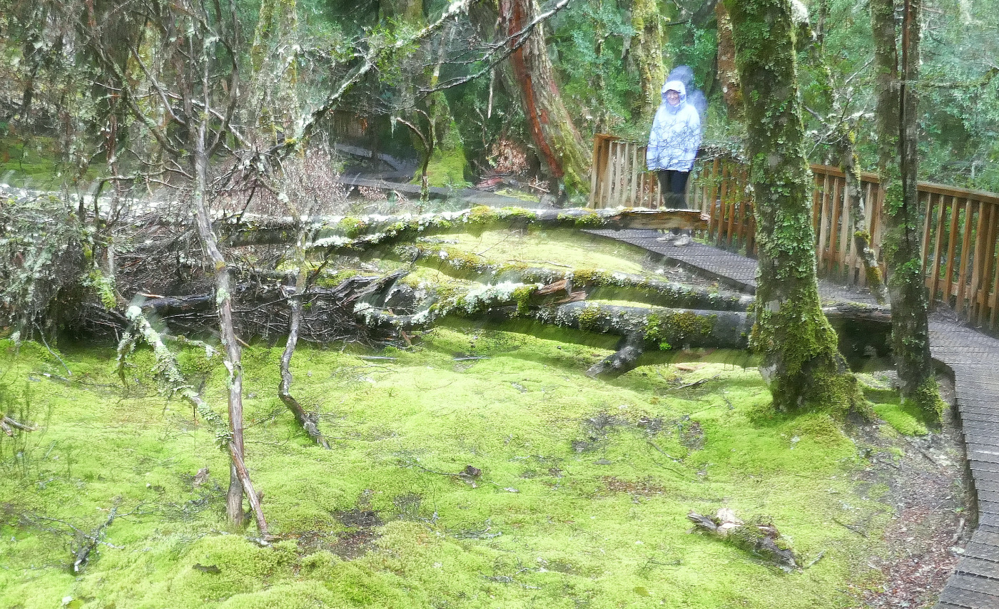 I can only presume this hike was called the Enchanted Walk because we were passing through an old-growth rainforest, similar to the Ballroom Forest we visited on the shore of Dove Lake earlier that day. The trees were very old, some almost totally covered with lichen. The ground was covered with moss and everything looked like we should keep our eye out for small children with ‘riding-hoods’ escaping from gnarly old witches. If we had actually encountered such children, I am sure they would have been too busy playing in the ‘interpretative tunnels’ beside the path, rather than worrying about fairy tale personages.