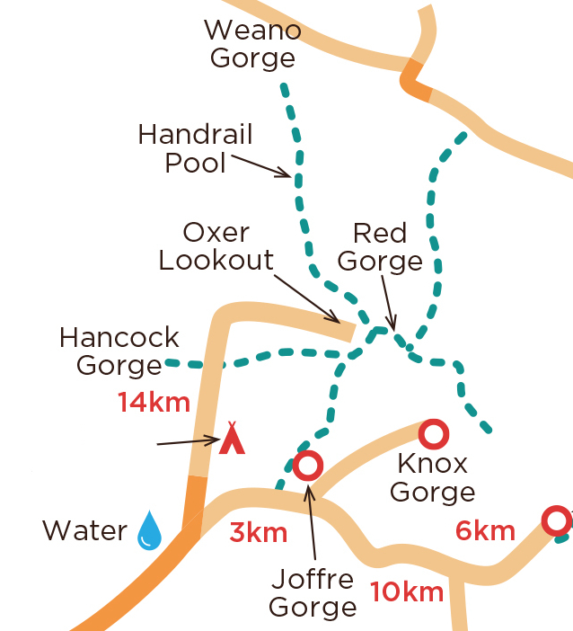 The turn off to the Weano and Hancock Gorges is on the road to the Karijini Eco Retreat and we had noticed on the day of our arrival that this road was closed. The gorges here were considered too dangerous due to the recent rains. However we had been informed the previous night when we visited the reception desk next to the restaurant that by our second morning in the park, these gorges would be open.