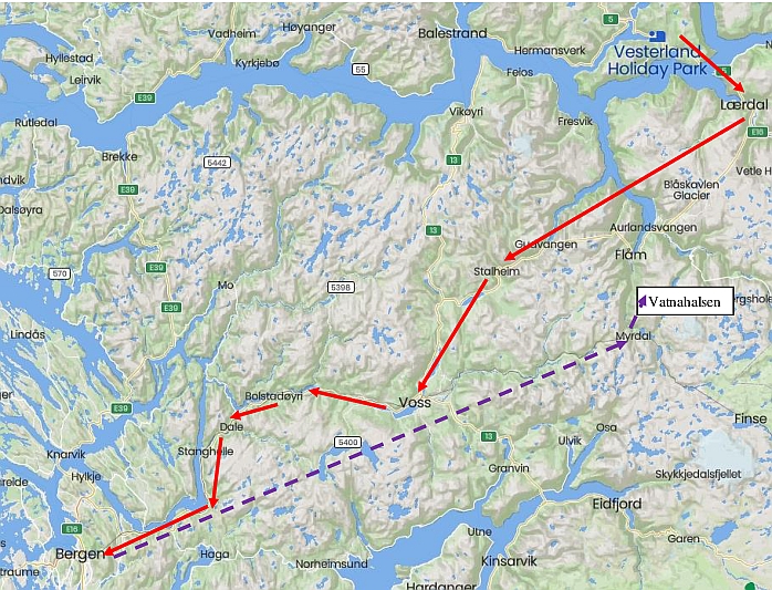 It was to be a complex day as after returning our car to the Bergen airport, we were to catch the airport train into the centre of Bergen and then catch the Oslo train all the way back up towards where we had started our day. We were to get off this train at Myrdal and catch a small train to our hotel for the night in Vatnahalsen. After a good night’s sleep here, we would be ready for our day on the Flam Railway!