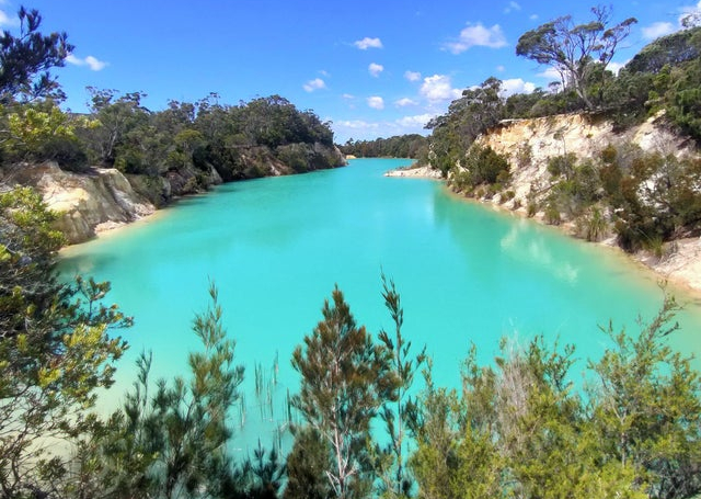 On our plan for the day’s journey made the previous night, our next destination was to be the Blue Lake which was a turn off from our road before we reached our next destination for the day, Derby. We had been told it was a beautiful spot well worth visiting. The tourist advertising explained… “Little Blue Lake between Derby and Gladstone is a natural phenomenon resulting from the pioneering mining days in the area.” The website Atlas Obscura had more details. “Little Blue Lake is one of several in the area that is the result of alluvial tin-mining. When the miners packed their bags and left town, the pit was filled with water to become a recreational spot. Visitors are warned about swimming in the lake because the water is highly contaminated with toxic heavy metals from past tin-mining activities. The shores are used regularly for camping and parties. Signs warning against swimming are frequently removed by vandals.”