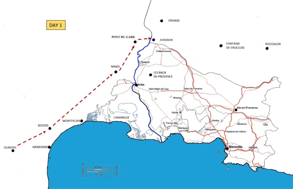 In 2014 we had set up home in the village of Olanzac in the Languedoc Region of France for an extended stay. The main aim of our pilgrimage to the area was to visit all the Cathar Castles of the region as well as two of the great local cities, Carcassonne and Toulouse. However we couldn’t resist the urge to have a holiday within a holiday and spend five of our valuable days visiting the region of Provence-Alpes-Cote D’Azur, staying at my dream destination city, Avignon. As our home village was reasonably close to Narbonne, Beziers and Montpelier, we were able to check out these famous places during our time in Olanzac. On the day of our drive to Avignon, we were able to cross off our ‘French Bucket List’, the wonderful Roman town of Nimes and the extraordinary sight of the Pont du Gard.