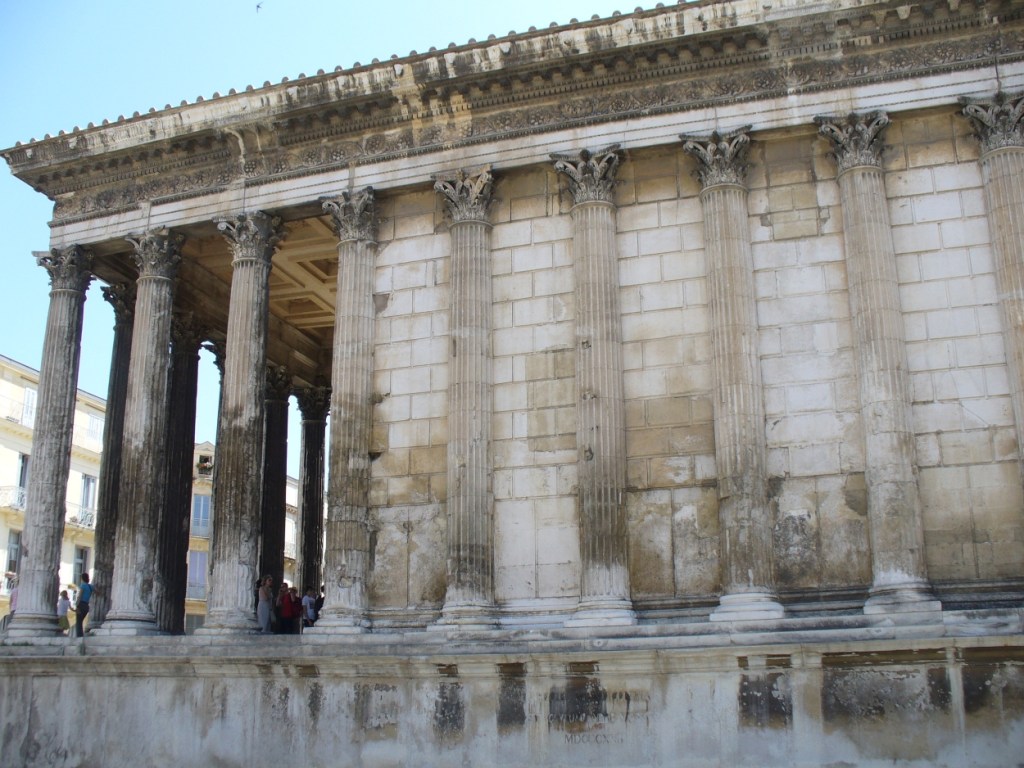 As can be seen on the map of Nimes below, we strolled down the Boulevard Victor Hugo to the next major site of Nimes, the Maison Carree (“Square House”) which is a Roman Temple built around 3 BCE. It was dedicated to the grandsons of Augustus Caesar (sons of the famous Roman General, Agrippa) who had died in their youth. When Thomas Jefferson represented the new United States government in France, he made a plaster copy of this temple and used it to design the new Virginia State Capitol.