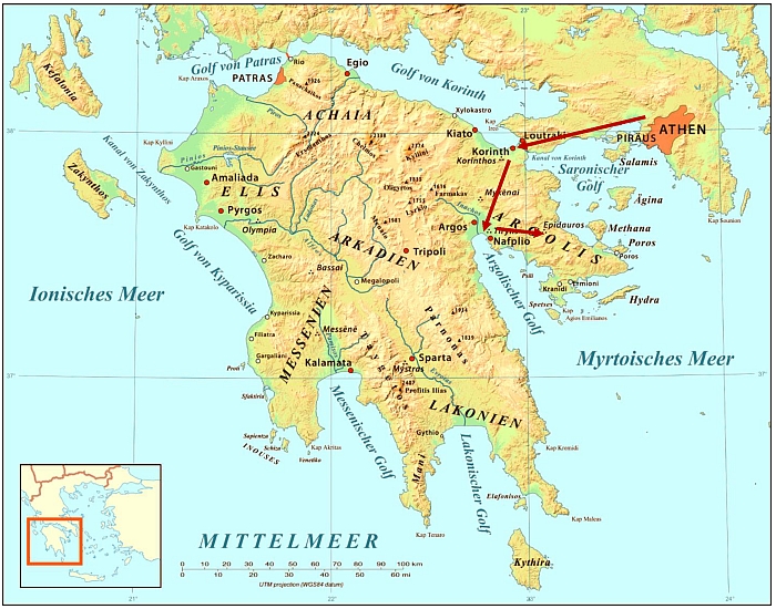 We were in the last days of our trip to Turkey and Greece in the European summer of 2013 before heading home. We had flown into Athens and were happily set up in Hotel Plaka. but we had one last day-trip on our itinerary. It was a bus tour that took us out past the Corinthian Canal, down to Mycenae and on to Nafplio (Naphlion) on the Gulf of Argolis. Given that two weeks earlier we had been to Pergamon and its associated Asclepion, it was a satisfying holiday cycle that we then found ourselves in the ‘mother house’ of this ancient healing centre, Epidaurus.