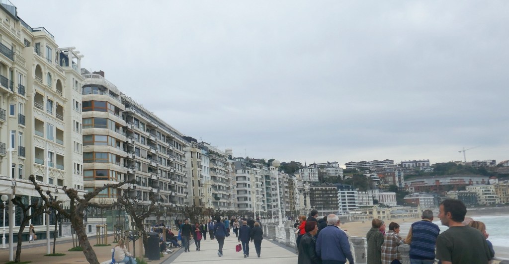 After our long drive from Laguardia, we were very happy to see the coast of the Bay of Biscay and the city of San Sebastian. It took a while for our van driver to find Hotel Catalonia as it was hidden on the top of a small mount in the centre of town, not far from San Sebastian’s beautiful, curved beach (Image below courtesy Wikipedia). We were now only 20 kilometres from the border of France, presumably a crossing point for so many pilgrims heading towards Santiago de Compestela at the other end of this coastline when it curves around to greet the Atlantic Ocean.