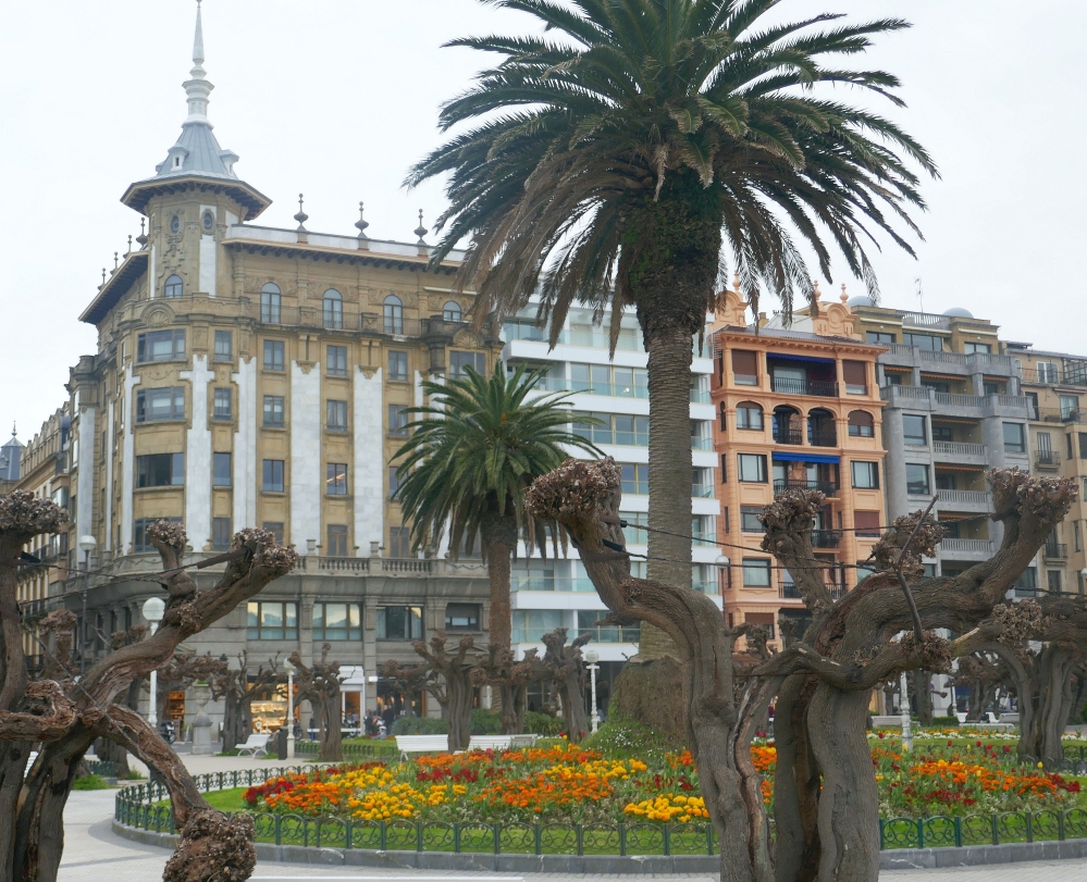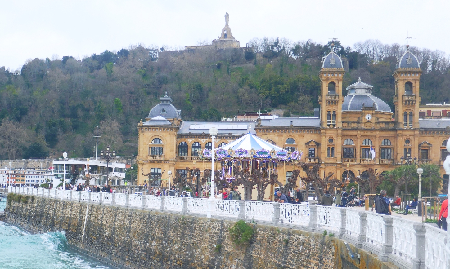On the way home from our walk, the sun was setting over La Concha Bay and the city of San Sebastian. This meant that photos of the ‘Belle Epoque’ carousel in one of the parks as well as City Hall behind it were taking on their evening faces.