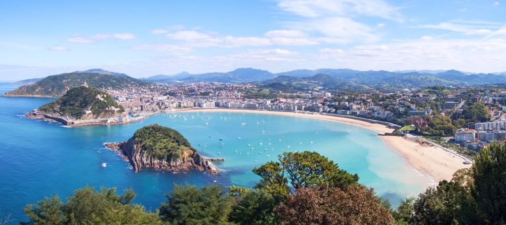 The medieval period experience of this city was of almost endless conflict between the powers of France across the border and local kings. Perhaps the most devastating event in the history of San Sebastian was the conquering of the town in 1808 by Napoleon’s troops. The city was attacked by British ships 5 years later which led to the almost complete destruction of the city. The British had taken over the island of Santa Clara as the base for the attack which can be seen in the above panorama between the two headlands of San Sebastian as well as the historical image to the right.