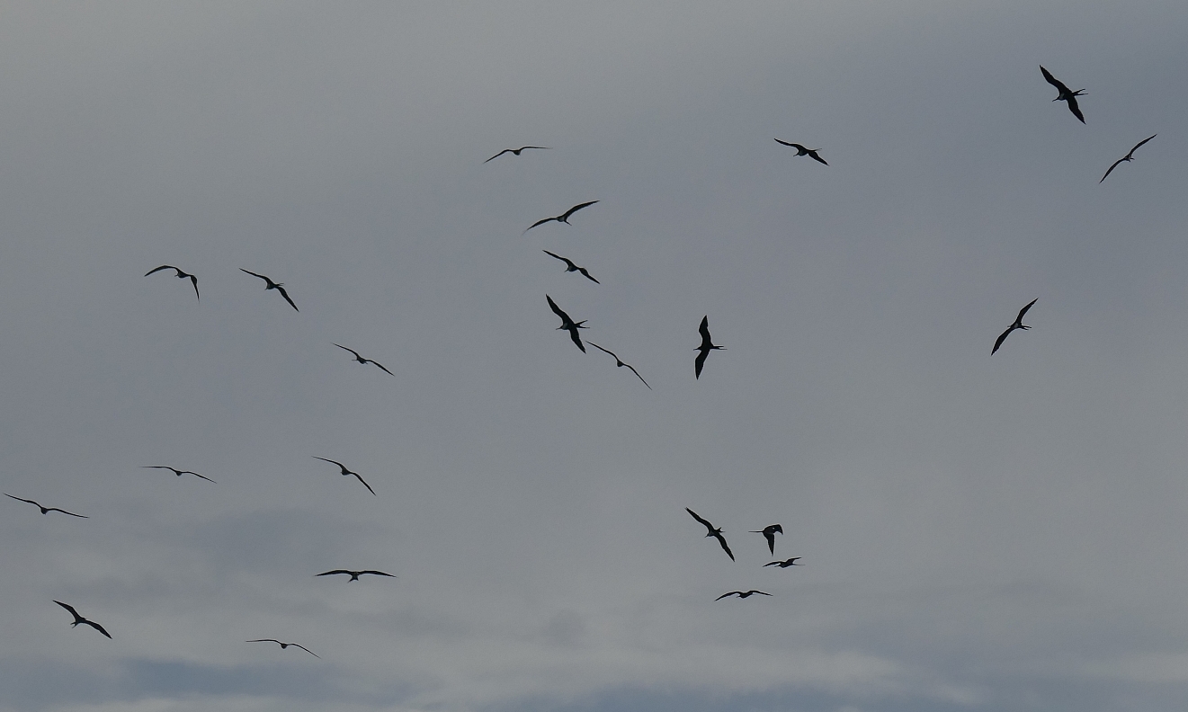 One of the wonderful sights when walking around Lady Elliot Island is that of the Frigatebirds circling in the winds above the end of the runway. One of the posters at the resort explains that Frigate Birds are regular visitors to the island but do not breed here. Frigatebirds are not popular with other birds in that they like stealing food caught by other birds rather than catching their own. From their circling spot high above, they swoop down on other birds and scare them into regurgitating their food which they then grab before it hits the water below. Perhaps this behaviour is brought about by the fact that their feathers aren’t waterproof so if they did dive for fish, they would become waterlogged and drown! Frigatebirds spend long days in the air and like other long flying seabirds, can sleep in the air. The frigate bird on the left is a male displaying his throat sac which of course is very attractive to the lady frigatebirds during breeding season.