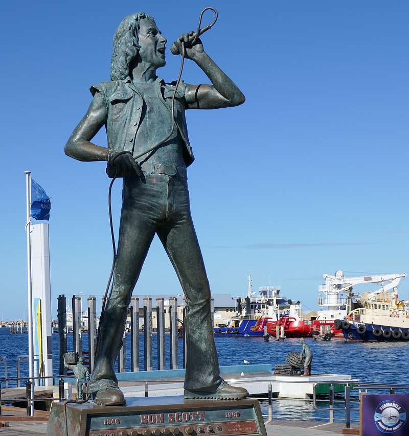 Not far from ‘Sardine Jetty’ is a statue of one of Freemantle’s heroes, the rock star Bon Scott. Although Scott was born in Scotland, his family migrated to Australia and settled in Fremantle in 1956. During his teenage years he was a long-term member of the “The Caledonian Scots Pipe band’ of Fremantle playing drums, but he clearly learnt the bagpipes as well as can be seen in his fabulous bagpipe accompaniment to AC/DC’s greatest hit, “It’s A Long Way To the Top”. He died tragically in London in 1980 aged 28. If you haven’t seen Bon Scott play bagpipes, here’s a bit of nostalgia for you. (https://www.youtube.com/watch?v=nULs4JW3tPI).