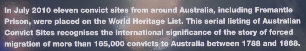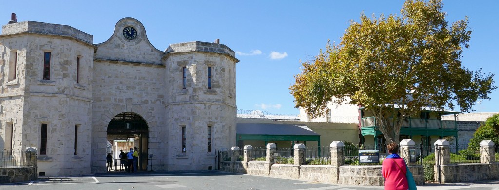We walked back past Fremantle Oval but decided to bypass our van and head up the hill behind the carpark and have a look at the externals of Fremantle’s famous gaol. Built originally to hold convicts sent out from Britain in the first half of the 19th century, it was eventually transferred to the colonial government in 1886. It continued as a gaol until 1988 when there was a prisoner riot, guards were taken hostage and a fire set that eventually did damage amounting to $1.8 million. It was formally closed in 1991 and today is a World Heritage site.