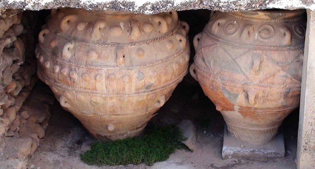 Discoveries at Phaistos have shown that people were living here at the end of the Neolithic period. The remains of a Bronze age ‘palace’ built around 2000 BCE was discovered and the archaeological evidence shows that it was destroyed at least three time by earthquake before being rebuilt each time. It was destroyed by invaders from the Greek mainland around 1400 BCE. Whilst the palace wasn’t rebuilt, people continued to live here until local enemies, from Gortyn, destroyed what remained of the town at the end of the third century. On the day we arrived at this beautiful ruin with landscape views to die for, it was hard to imagine that a city existed here three and half thousand years ago.