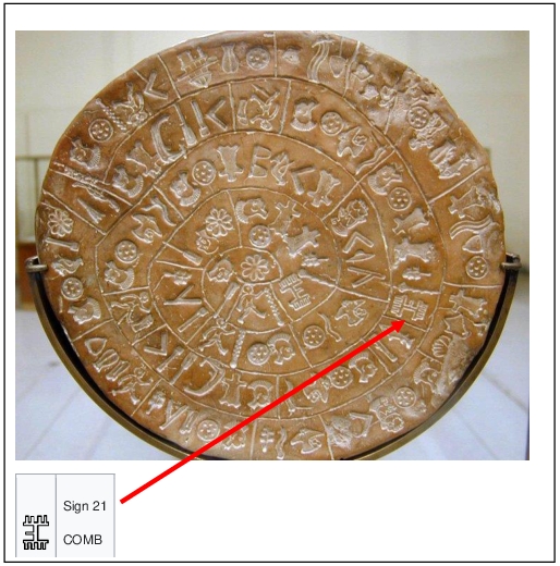 The depth of the layer where the Phaistos Disc was discovered suggests a date somewhere between 1850 and 1600 BCE. Many of the ‘syllabic signs’ in Linear A are known from Linear B, a language that is considered a Mycenaean Greek dialect that has been dated from about 1400 BCE. Inscriptions in the Linear B dialect had been found in Crete from the time that the Myceneans had taken over most of the cities on the island.