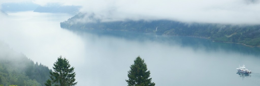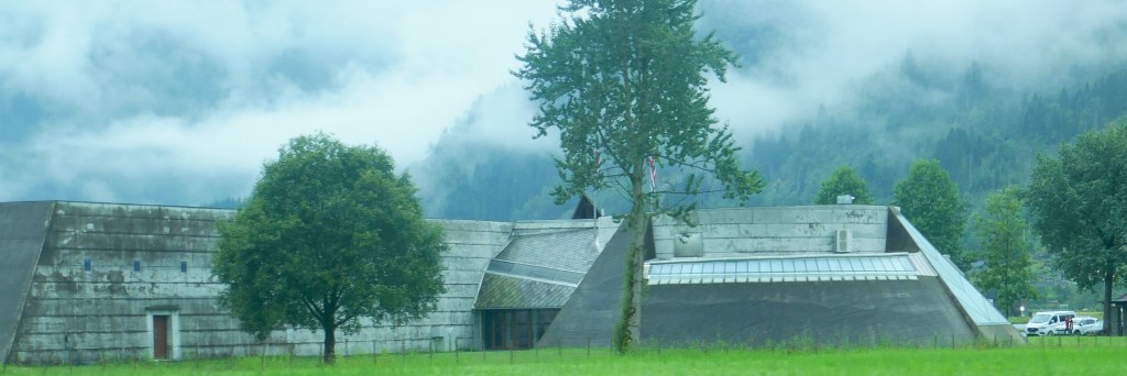 One of the very interesting areas along our route was when we arrived in the area around the Fjaerlands Fjord. Just before climbing up the ridge above this Fjord there is a Glacier Museum. It was opened in 1991 and is dedicated to issues around climate change, particularly as affecting the nearby Josterdals Glacier that dominates this region. The museum sits at the edge of the Jostedalsbreen National Park which was also established in 1991.