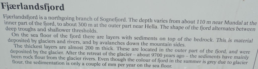 The locals have gone to a lot of trouble to provide lots of information about the fjord and the glaciers in the region. There are explanations about the history and development of the glaciers from about 2 million years ago and the links with the fjords of the area. Below is one example of a poster from this excellent stopping point.