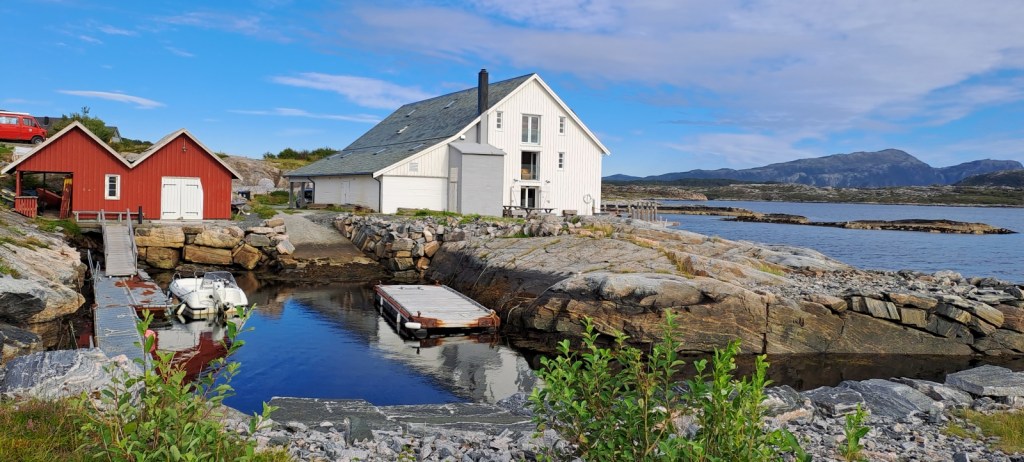 After a very pleasant night relaxing in the old fish factory, we decided we would have a quick look around Avaroy island before we continued south to Geiranger. We returned to the dirt road that led to the small fishing village of Sveggen. Avaroy island is just one large rock but the sea had cut a channel down the middle of it and humanity had been delighted to settle in this convenient channel for a life-style of ocean views and cod-fishing.