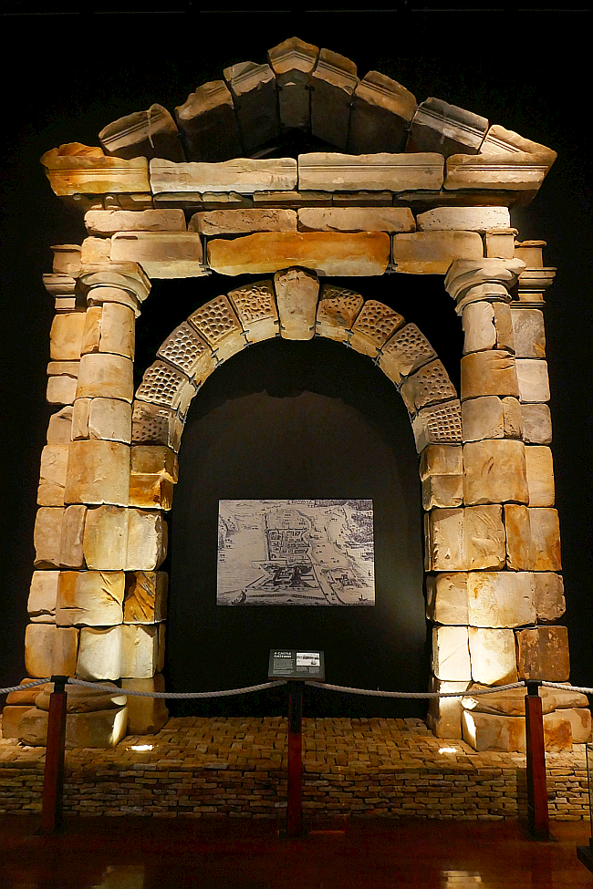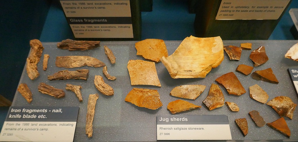 After recovering from our viewing of the HMAS Sydney film, I made it to the Shipwrecks Gallery. For a shipwreck fan, this was Nirvana, a collection of the “archaeological riches” of four Dutch shipwrecks, the Batavia, Gilt Dragon, Zuytdorp and Zeewijk. The most famous wreck is of course the Batavia, particularly as it hit a reef off the coast of Geraldton on the Abrolhos Islands. Two displays caught my eye on this subject, one was a canon rescued from the Batavia and the other was a collection of sandstone blocks that made up the ballast of the doomed ship. These stones lay on the ocean floor for more than 350 years before it was realised that they were destined to become a gateway for the Dutch citadel that was the home of the Dutch East India Company on Java. Luckily for Geraldton, marine archaeologists rescued these stones from the wreck and they were put together here in the museum, long past their ‘use-by’ date in Java.