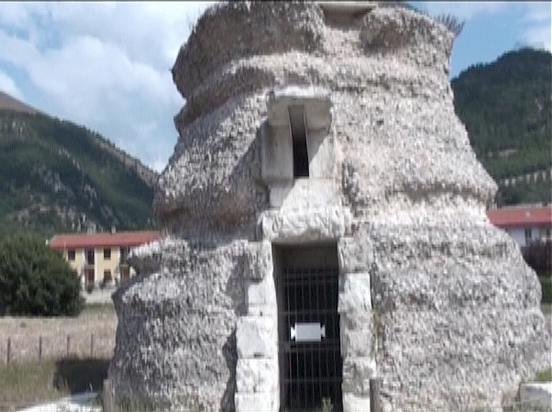 From the Martyr’s Piazza, we drove down the road to the large parkland where the Roman Theatre is situated. There is a car-park for weekend markets here so there is plenty of parking spaces. We spent some time inspecting the remains of this impressive theatre. There is still plenty to see here but it is curious to note that the stones that are missing from this building no doubt can be found elsewhere in Gubbio as the theatre was mined for stone in later centuries, used to build town walls, churches and palaces for local nobles. The curious bee-hive structure to the right was located not far from the theatre and was worth a photo. (I wasn’t able to establish its original usage).