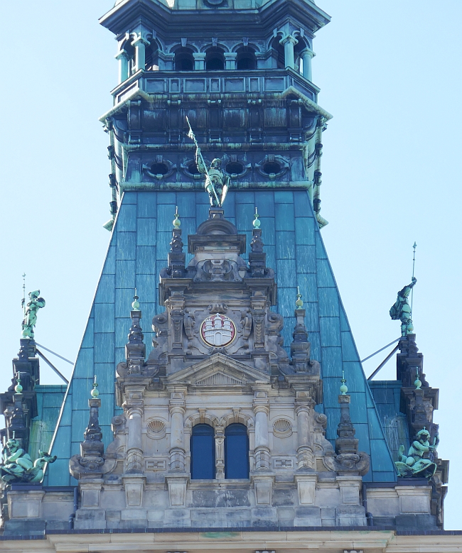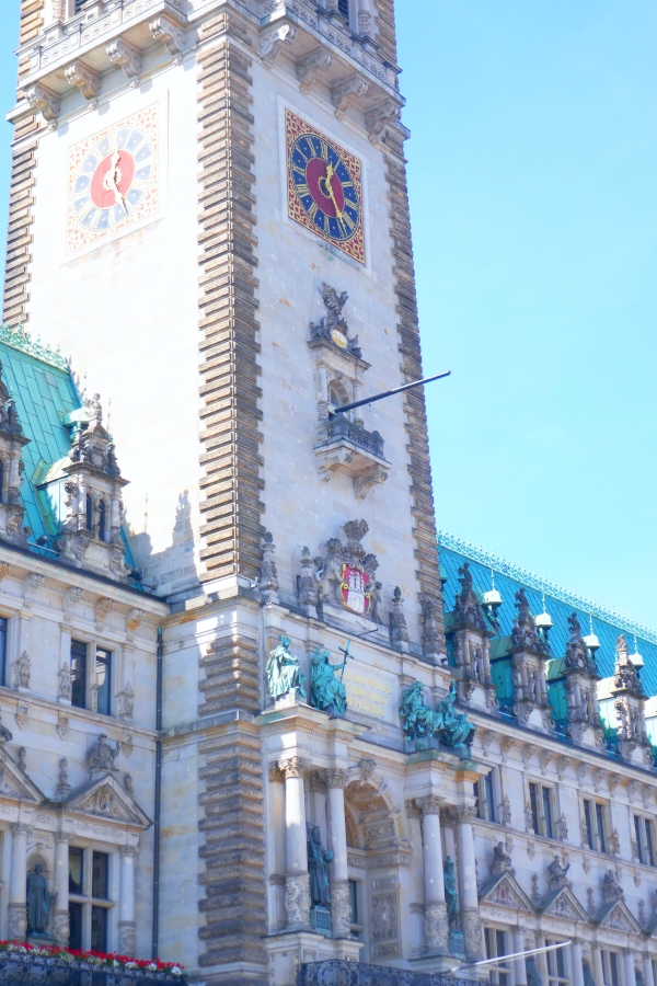 The city’s original town hall had something in common with St Nikola’s Church, it was one of the victims of the major fire of 1842. It was a long time before the process of building a new Rathaus began; the gorgeous building we had come to see was not started until 1886 and not opened until 1897. There are approximately 647 rooms in this flamboyant building.