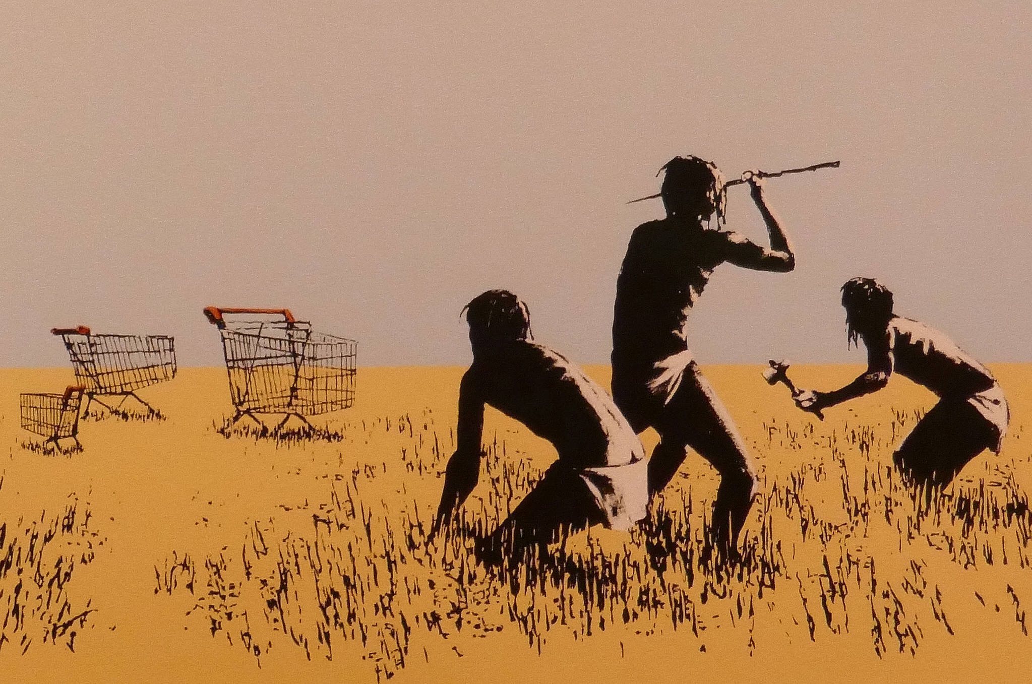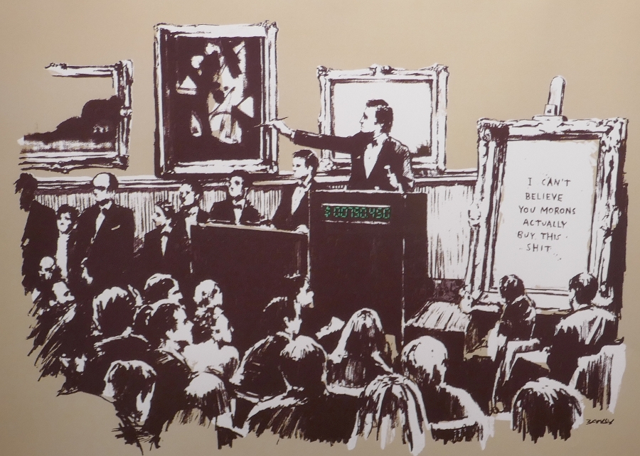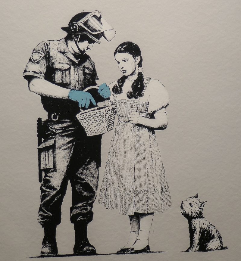 We were very pleased to find the exhibition of the works of English street artist Banksy. Part of the curiosity of this artist is that his name and identity has never been confirmed. His street art being amusing speculations to all manner of modern views and institutions and we came away from the exhibition very stimulated by his curious take on modern history and world culture. Here are just a few examples of what we saw.