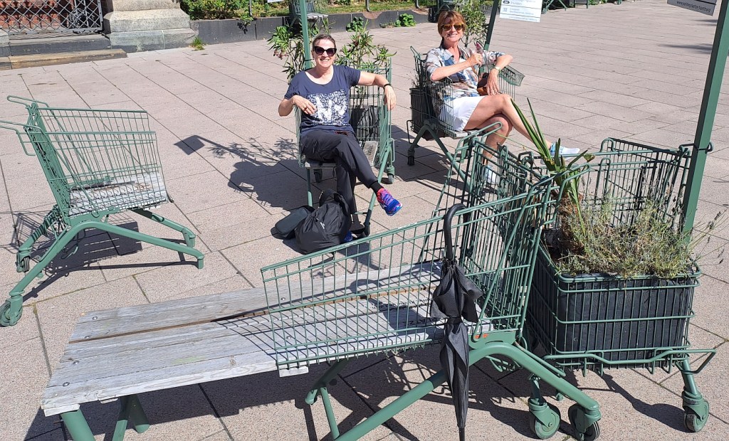 I am not sure how Banksy would have found the use of supermarket trolleys outside the doors of St James Church down the road from his exhibition but the ladies in our party seemed to find them both comfortable and entertaining.