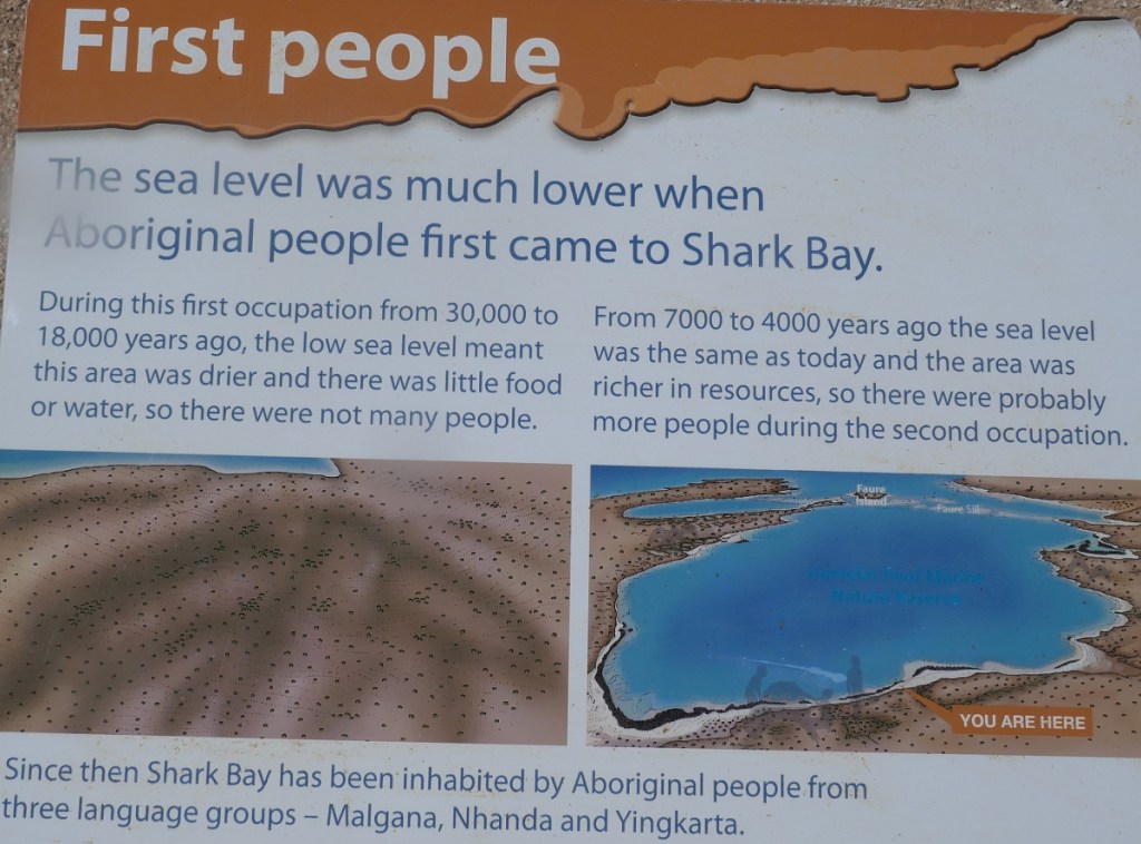 If we were using the map from the information board printed earlier in this blog, from the quarry we were meant to walk through the dunes above the beach and read the information board about the First people in the area. The trail and its purpose weren’t quite clear to us and we assumed that we just needed to keep walking and we would arrive at the section of Hamelin Pool where the Stromatalites were hiding. To be honest, we had not yet really understood what these underwater formations were going to look like.
