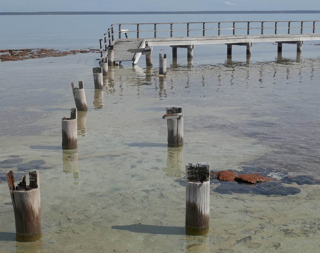 Perhaps I was wrong in assuming that it was a tourist facility to showcase ancient structures that may be the missing link needed to explain how life on earth developed back in the long ago day. Perhaps the broken-down boardwalk was just a left over from the old days of bales of wool shipments. The boardwalk had a flimsy tape across the entryway urging folk not to walk on it…even this sign failed to convince anybody. This facility was a workplace health and safety disaster waiting for an extremely careless visitor to put a foot in the wrong place. All in all, it looked like a tourist attraction where the proprietors had lost interest and closed it down without telling the visitors.