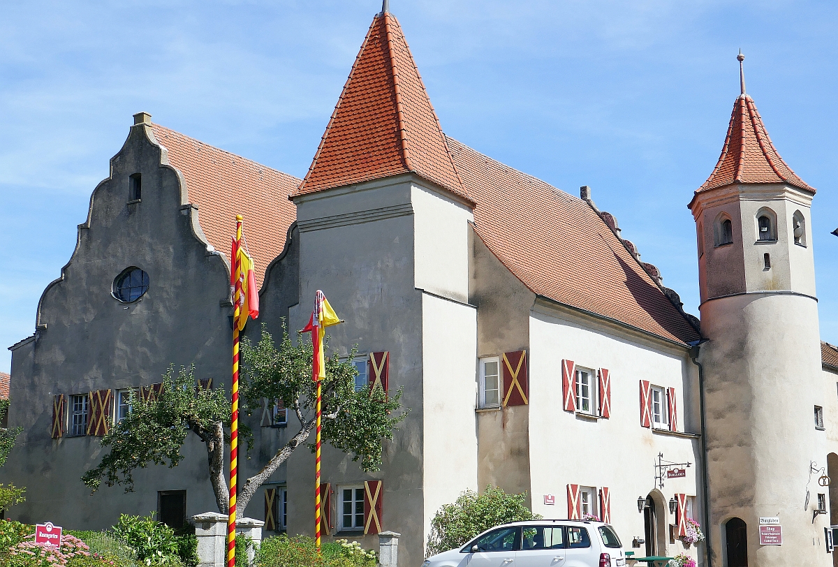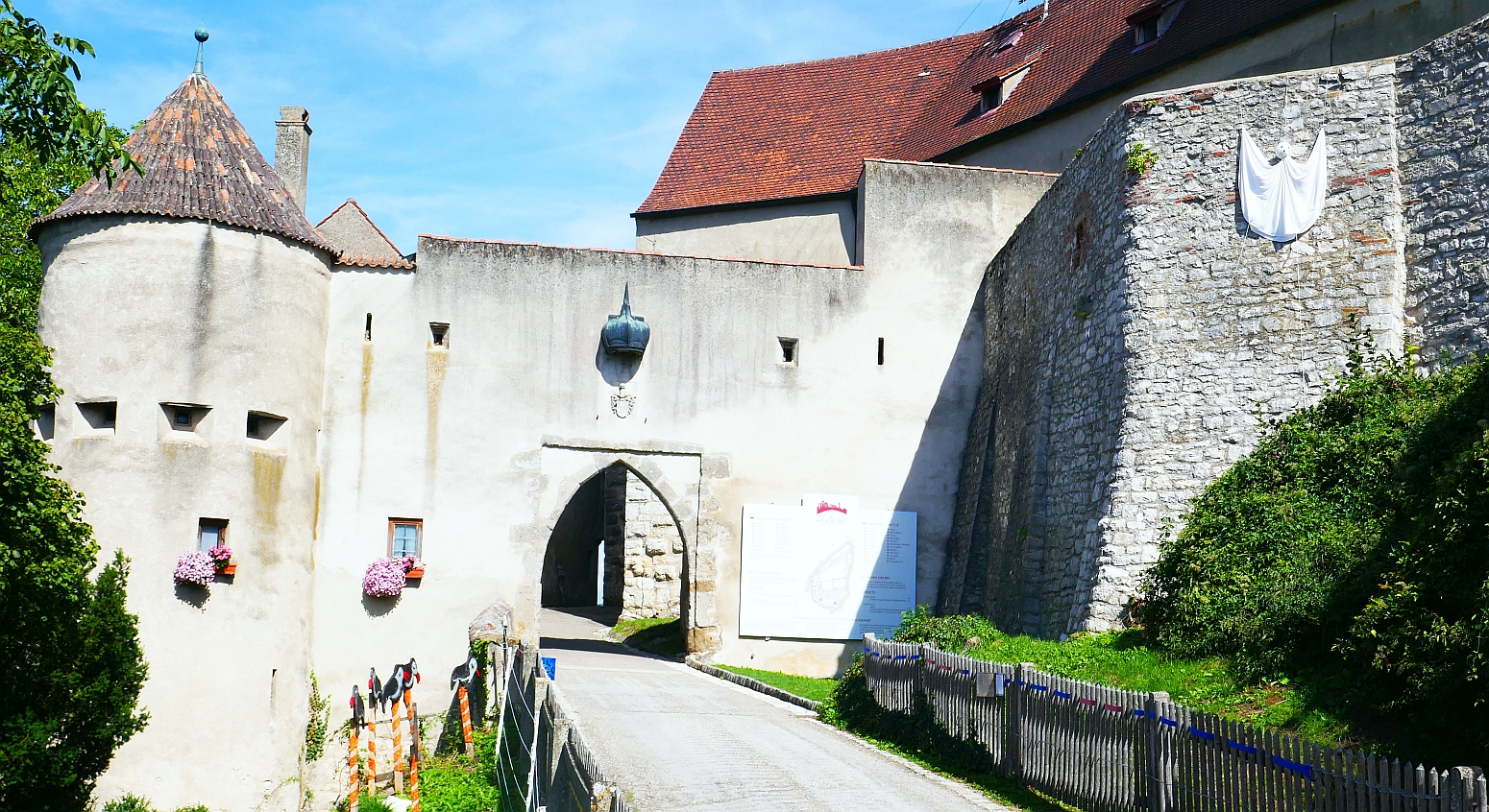 In many ways this castle is a small fortified town; it is surrounded by a wall with six towers. Inside the walls there is not just one large building containing all the castle facilities but a series of buildings that perform specific functions for those folk that once lived here. For example on one side of the inner courtyard shown in the image below, there is the bakery on the left (now the ticket office and tourist shop) and on the right is what is referred to as the main palace building where Oettingen family members would reside