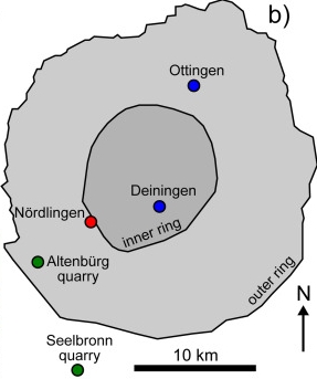 Our trip between Rothenburg and Augsburg was a busy one. We spent a couple of hours touring the medieval walled city of Dinklelsbuhl before we set out for our main destination of the day, Augsburg. I mentioned in a previous blog that I would have loved to have visited Nordlingen along the way as it would have made the third town in Bavaria that we had seen that still had its original medieval walls. However, Nordlingen has another major claim to fame in that humanity started to live here in paleolithic times, little understanding that they were inhabiting a meteorite impact crater (Nordlinger Ries) that had been formed 15 million years before. Nordlingen was built 6 kilometres from the centre of the crater. Scientists established in the 1960s that the depression was caused by the impact of a meteorite due to the presence of Coesite rock that can only be formed by the shock pressures of a meteorite impact. The local church in Nordlingen was made with Coesite rock, making it one of the few churches on earth where the building materials have been formed by cosmic forces, emanating from a universe-travelling meteorite (See Appendix 1).
