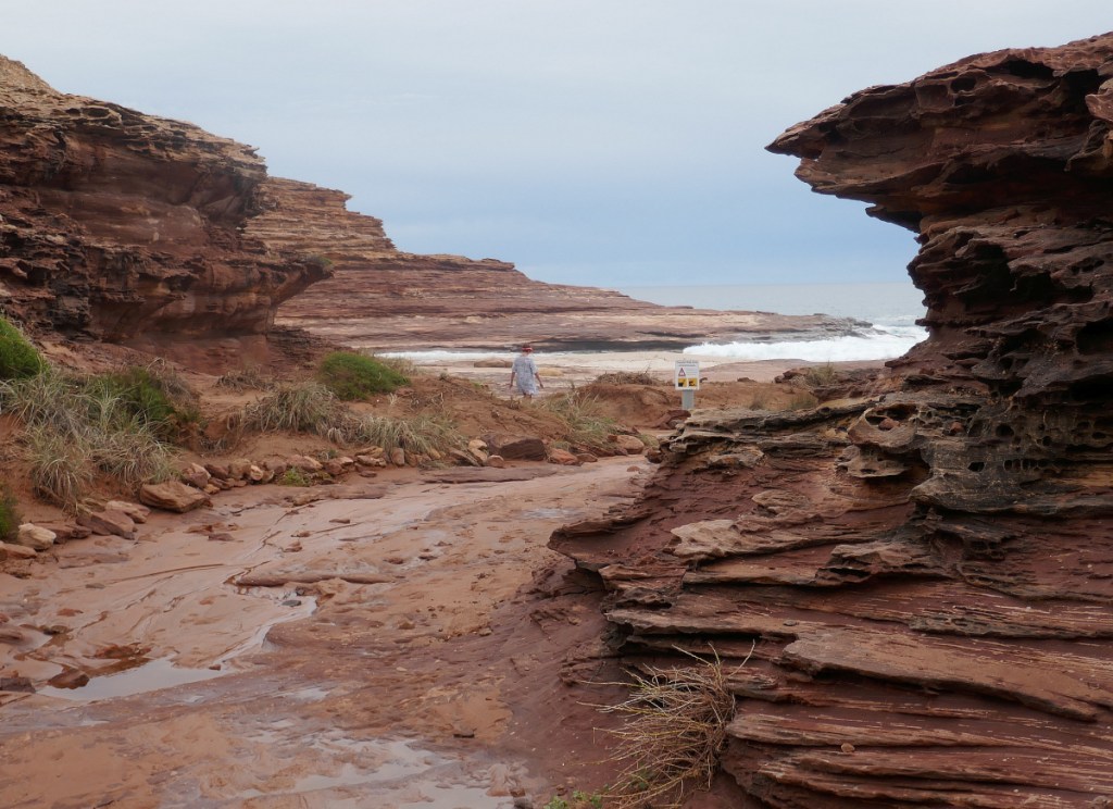 Apart from occasionally being in the path of cyclones, Kalbarri has a lot going for it as a place to visit. Its main street runs alongside the Murchison River, the longest river in Australia, as it finishes its journey to the sea. If you were a boatie or a fisher, just this one aspect of the town’s situation has a lot going for it. If you had not long before been to Karajini National Park and were looking for more red gorges, the National Park behind the town had them in spades. If sheer sea cliffs were your preferred option, you really couldn’t have found a better place for such breath-taking scenery. Underlying it all, if you were interested in the European arrival in Western Australia, this town reveals some of the great stories of this part of Australian History’