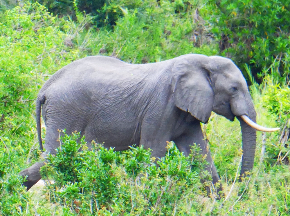 Before we found the Leopard from the previous day, we encountered a huge rhinoceros feeding on its vegetarian diet of fruits, grasses leaves, twigs etc. As we expected, our rhinoceros was not interested in us and ambled past us without acknowledgement. It had no ‘horn’ on display as one method of reducing the impact of poachers on the population of these animals is to remove the rhinoceros’s horn early in their life. This is one way of thwarting the activities of poachers from killing these huge animals. The demand for Rhino horns is a cultural practice in China and Vietnam where the horns are ground up for ‘medicinal’ purposes or used as status symbols.