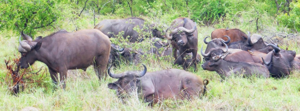 Later in the afternoon we came across a large herd of African Buffalos wandering the savannah. African Buffalos have never been domesticated, apparently due to their “unpredictable temperaments. Their closest relatives are the Asian Water Buffalo.