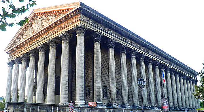 It is not surprising that this prime site at the end of the Rue Royale attracted many ideas for a monumental church building. Before Napoleon’s time, two churches were started and were half completed before the next French government decided to try another idea. It was Napoleon himself who decided on the design which was almost constructed before he too passed into history. Eventually the building was completed and dedicated as a church in 1842. The design was modelled on an ancient temple that the Romans had built in the city of Arles around 3 BCE, dedicated to the grandsons of Augustus Caesar. (Check https://fogtravel.blog/driving-to-avignon-via-nimes/ for details). Seven years after completion it was to host the funeral of the great composer Chopin.