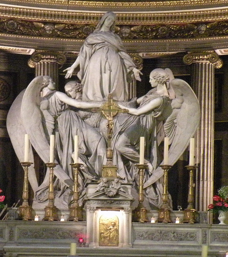 Like the other grand buildings of Paris, La Madeleine was targeted by the revolutionary Paris Commune in 1871. The church itself wasn’t damaged but the Parish priest of the church was arrested and finally executed alongside the Archbishop of Paris before government troops retook the city. As can be seen from the images of the Church’s dome and the high altar below, the building is not only an architectural masterpiece, it houses many beautiful art works that are a pleasure to inspect today