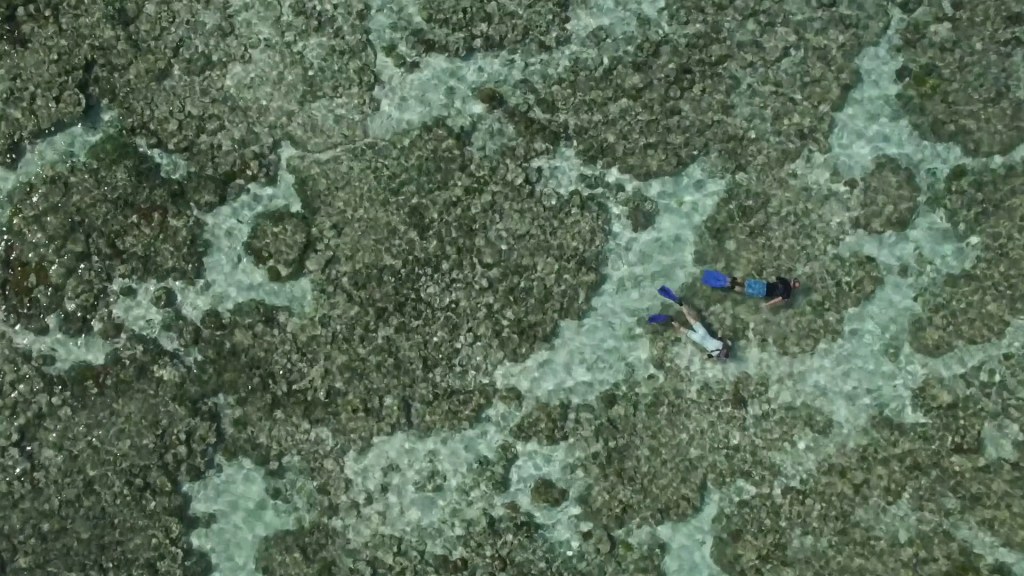 I had been snorkelling all my adult life but generally at headlands on the NSW Southern Coastline and in later years around the Gold Coast. This background of snorkelling hadn’t prepared me for the quality of what I saw on that first afternoon. As can be seen from the overhead shot of the lagoon below left, the lagoon is full of low growing coral with sandy alleyways between them where the Beche de Mer of all sizes celebrate their freedom from human predators by squirming slowly across the sand.
