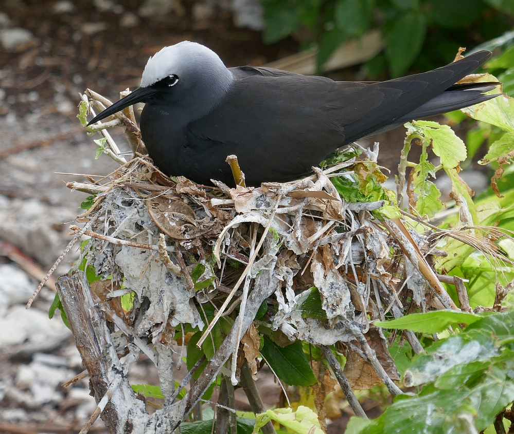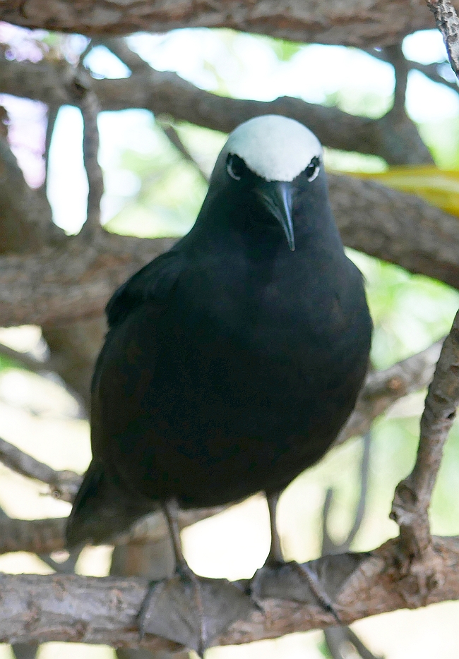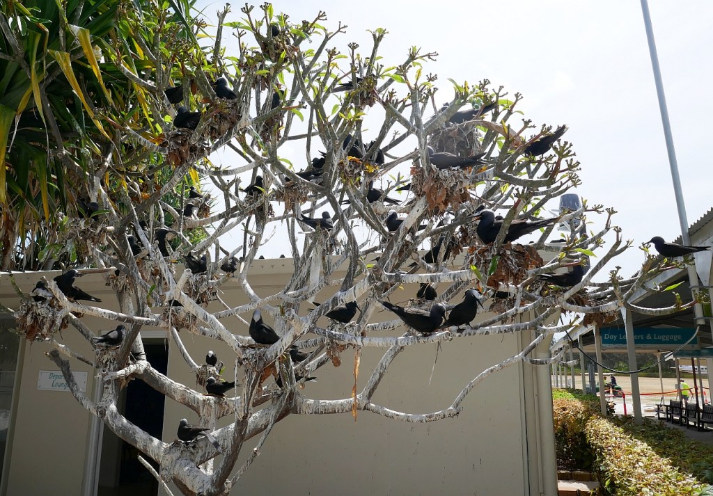 Since the 1960s, subsequent managers of the resort on the Island have continued the work of restoring the vegetation to LEI. As a result, today the Island is a haven for over 50 species of tropical birds and it is estimated that over 100000 birds nest there over summer. One of the consequences for us of this continuing vegetation process is that as soon as we got off our arrival plane, we were stunned by the amount of birds that careered around the buildings of the resort. After finishing our arrival process, we headed towards our glamping tent and passed the tree in the image above left. As can be seen, every possible branch or fork in the tree is home to the ugliest nests in the world that accommodate the White Capped Noddys awaiting the arrival of their first egg of the breeding season. Our route to our home for the next three days was down a path between cabins that was not so much a human walking track but a flight-path for speeding Noddys and Bridled Terns that shot through the air like missiles carrying bits of straw and other detritus for their nest mates; at times I was fearful that I would end up with a bird-beak speared into my forehead from a careless bird that failed to swerve early enough.