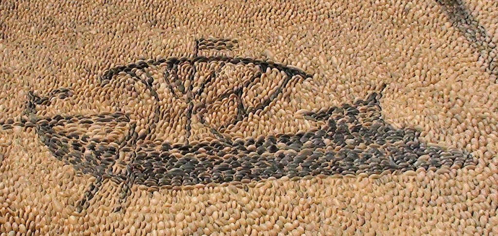 The above image of the Lindos Acropolis indicates by arrow the route we took up to the top. However, one of the most interesting sites on this walk is not far up the pathway, engraved into rock wall of the hill. It is a ‘relief’ image of a warship used in the many sea battles around Rhodes before the common era. Having an understanding of what ancient ships looked like, even from texts where they are described with some clarity, is difficult. The best information is when such wrecks are found at the bottom of the sea and can be brought out of the water and preserved. Sometimes ancient ships are found buried in graves of Nordic heroes or lost under mud from flooded rivers. Finding an accurate design engraved on a rockface is an excellent way of accurately communicating across the millennia of what these ancient boats looked like. The site information sign next to the boat is copied below. The other image is of a similar rock drawing of an ancient trireme but this one comes from a site called Sperlonga, halfway between Rome and Naples. Inscribing such images on rock was apparently reasonably common in the Hellenic age as memorials for great heroes or lost sailors from the regular devastating sea battles.