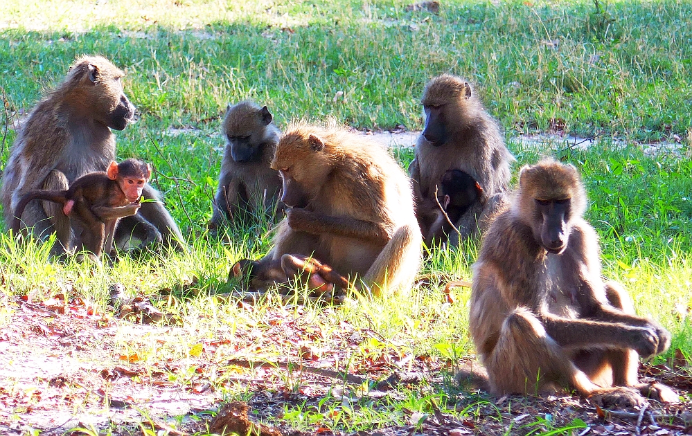 We came across a large group of of baboons who appeared to be relaxing for the morning. The baboon is the largest of all monkeys and their diet consists of fruits, seeds, grass, bulbs, bark, grubs, rodents etc. It was still early in the day when we encountered this troop and they appeared to be quite relaxed about the day ahead. The older baboons appeared to be very comfortable and sat around in small groups while the young baboons played games in the trees and around the Termite mounds. The leopard is the main predator of the baboons but apparently the Wild Dogs also occasionally attack baboons.