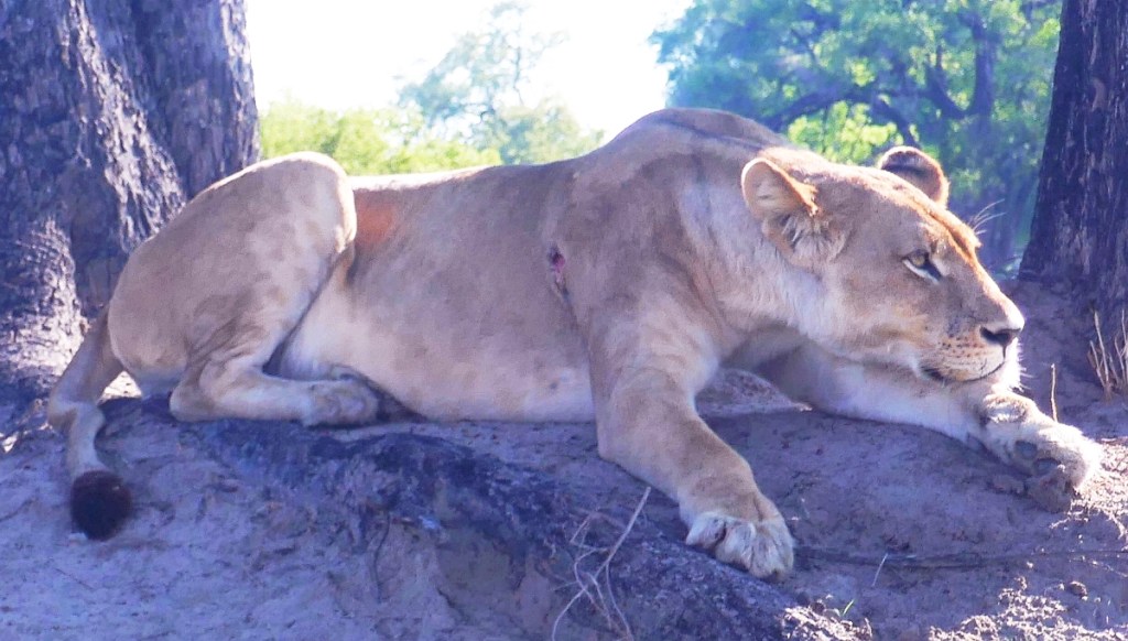 We had been driving for a few hours when it was announced that it was time for morning coffee. Our guides chose a large shady tree for this purpose that wasn’t that far from a waterhole that appeared to be drying out during this low rainfall period. Its major inhabitant was a large hippopotamus who looked like he/she was lying more in mud rather than water. It didn’t look like the hippo would survive for much longer in this pool before it was time to move to a waterhole with more water. In the meantime, the egrets were happy to continue to assist with some cleaning whilst on the look out for bugs visiting the hippo.