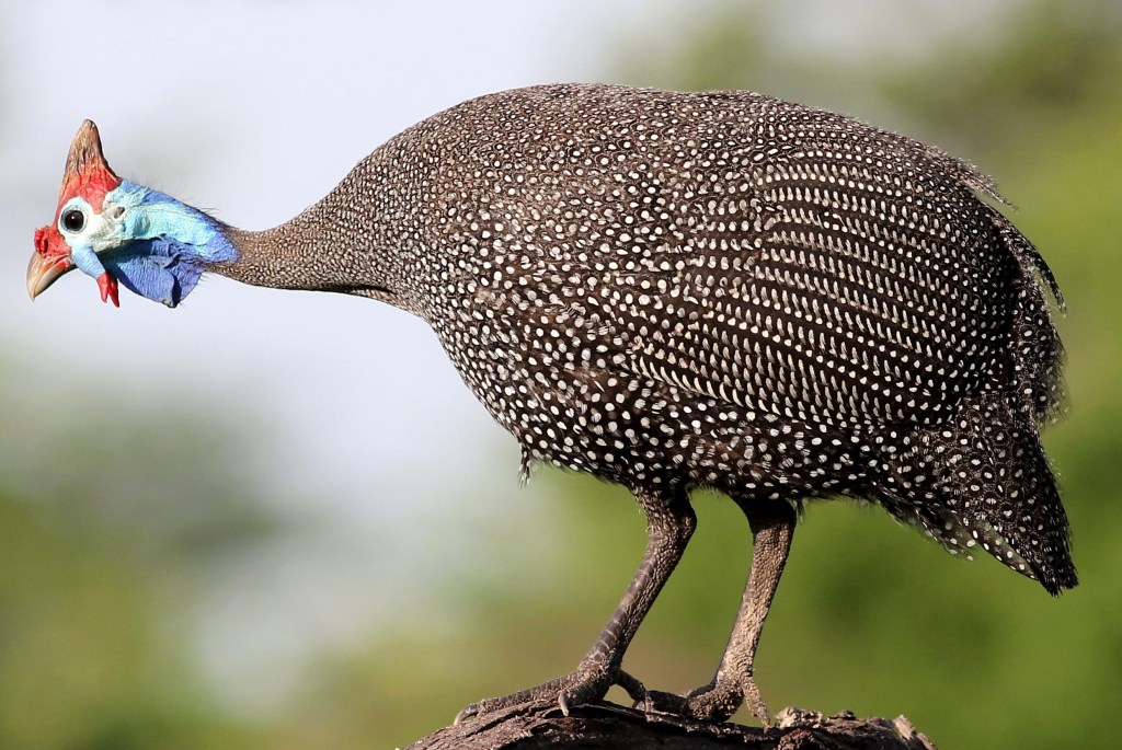 One of my favourite bird sightings was always the Helmeted Guinea Fowl. We encountered quite a tribe of these birds at the Victoria Falls River Lodge. They were the local chooks that wandered around the grounds all day cleaning up the site. I had never seen chooks as good looking as these characters in Australian fowl houses. Along with so many other African species, there were plenty more of these beautiful birds prowling the swampy grasslands around the dirt roads of the Okavenga.