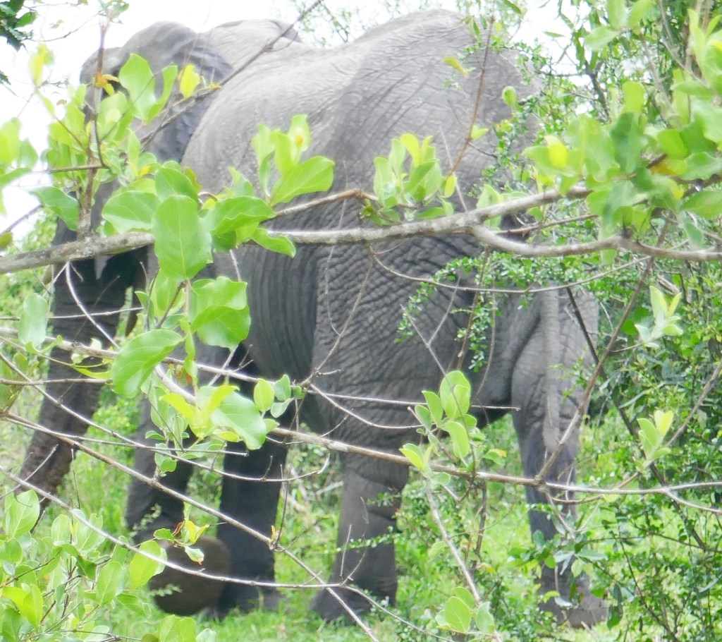 We hadn’t seen many elephants in Londelozi so far on our first two days but not long after leaving the Wildebeest behind, we came across a small group of elephants, doing their best to get a feed while shielding themselves from the intrusive tourists