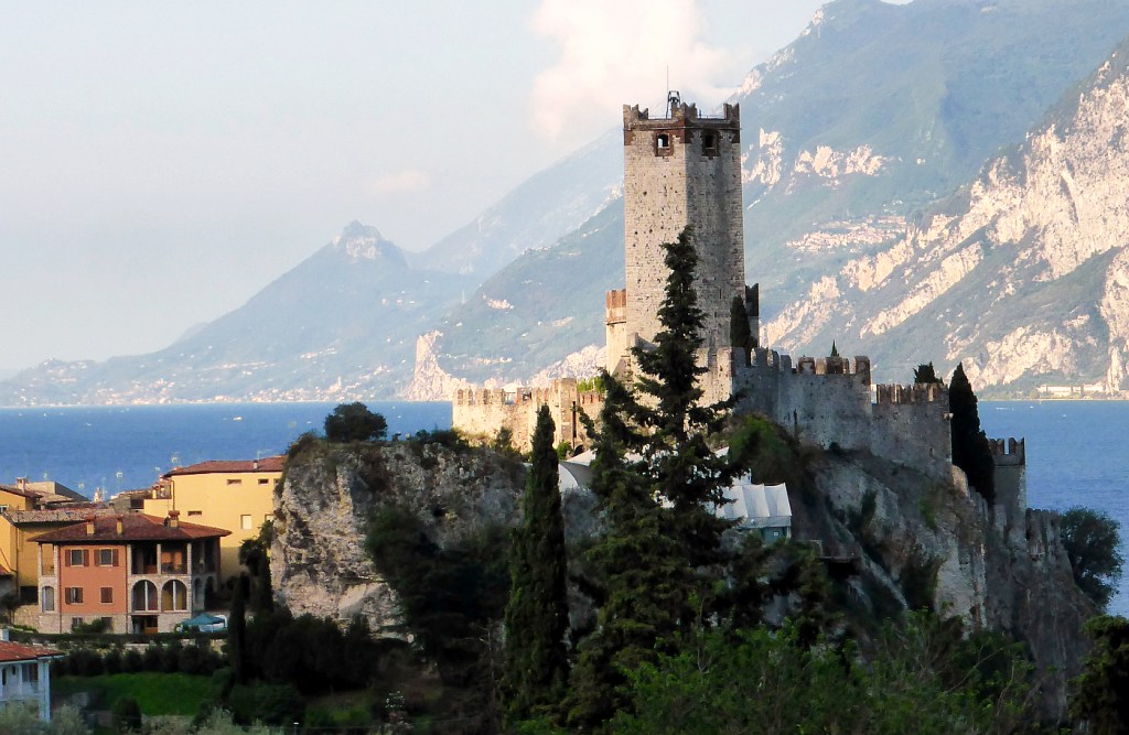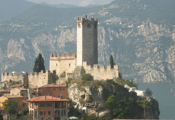 As can be seen on the map to the left, Malcesine is on a lake in the centre of Northern Italy and so has been at the crossroads of history for more than the last 2000 years. Not only was the area fought over between Italian superpowers Milan and Italy, it was also on the route to Rome if Austria or France happened to be quarrelling with the Pope in Rome. While the town was under the control of the Roman Empire, a major fortification wasn’t built until 590 when the Lombards built a castle on the huge lakeside rock where today’s castle stands. It was destroyed and rebuilt over the next few centuries until it fell to old friends, the della Scala family from Verona. The city of Milan took control of the area in the late 14th century and then the Venetians for almost 400 years until 1797.