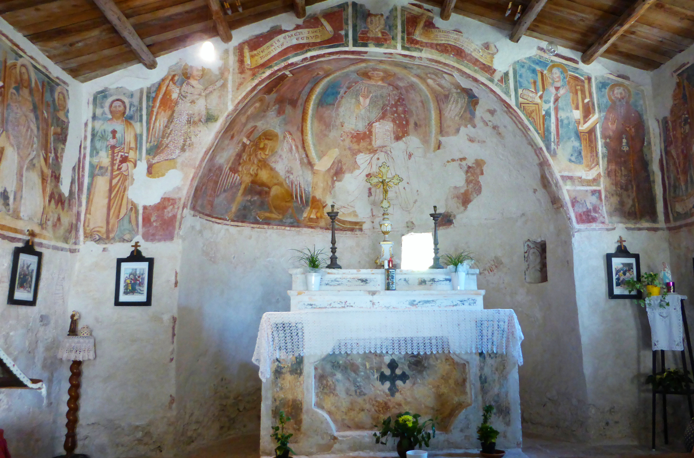 Our hiking trail was a stone paved mule track that took us up to a ‘ghost hamlet’; most of the houses were empty but our tour guide had an old friend Olga still living in the medieval village of Campo and she had organised lunch for us at the top of our walk. Before heading to lunch we stopped and were shown through a small mountain Church, St Pietro in Vincoli (St Peter in Chains) that is estimated to have served the people of Camp since the start of the 11th century. It was a surprising treasure with the inside walls covered in vibrant mosaics.