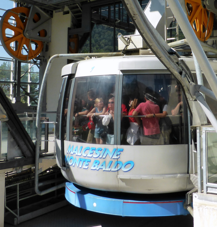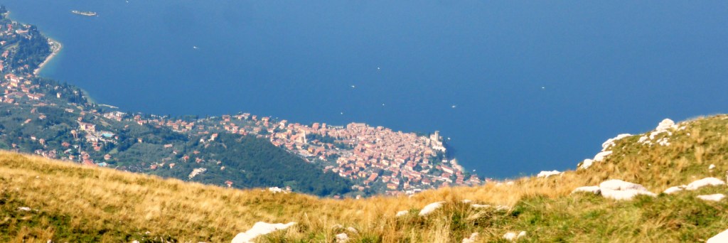 On Day 4 of our visit to Lake Garda we were gathered for a short car trip around the corner and up the hill to the San Michele station of the Monte Baldo Cable Car. As somebody not fond of suspended vehicles gliding up steep mountain sides, I was not happy to also discover that the Cable Car capsule revolved at the same time as it ascended the 1800 metres up to the top of Mount Baldo. I couldn’t hide at the back of the capsule as I cowered waiting for the inevitable failure of the cable car; it kept returning to the ever expanding view out over Lake Garda which the rest of the passengers were very impressed by. I am always surprised by surviving these trips but happy I came as the views were stupendous over the lake and across the Dolomite mountains.