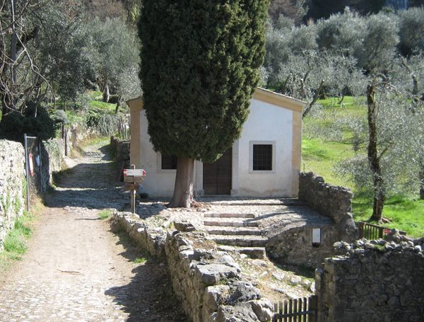 As the map on the left below suggests, on one of our days beside Lake Garda we were driven down the coast of the lake to the Brenzone area. After we were dropped off, we were led on a walk that took us slowly up the hillside with beautiful views back down the mountain to the lake and over to the other side where we could see Limone sul Garda on the edge of the opposite bank of the lake.