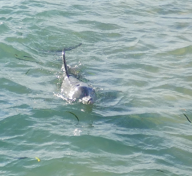 According to the announcer, the Dolphins are fairly punctual so by the time we were let through to the beach or the viewing jetty, it wasn’t long before fins started to appear heading towards the beach. As we weren’t ready to get wet or get close and personal with Flipper, we chose the jetty. This probably gave us a better view of the Dolphins arriving and this morning there seemed to be 7 or 8 dolphins who chose to come for breakfast. The announcers were very good at sharing out the food to tourists of all ages lined along the beach. Folk of all ages seemed to highly enjoy the process.