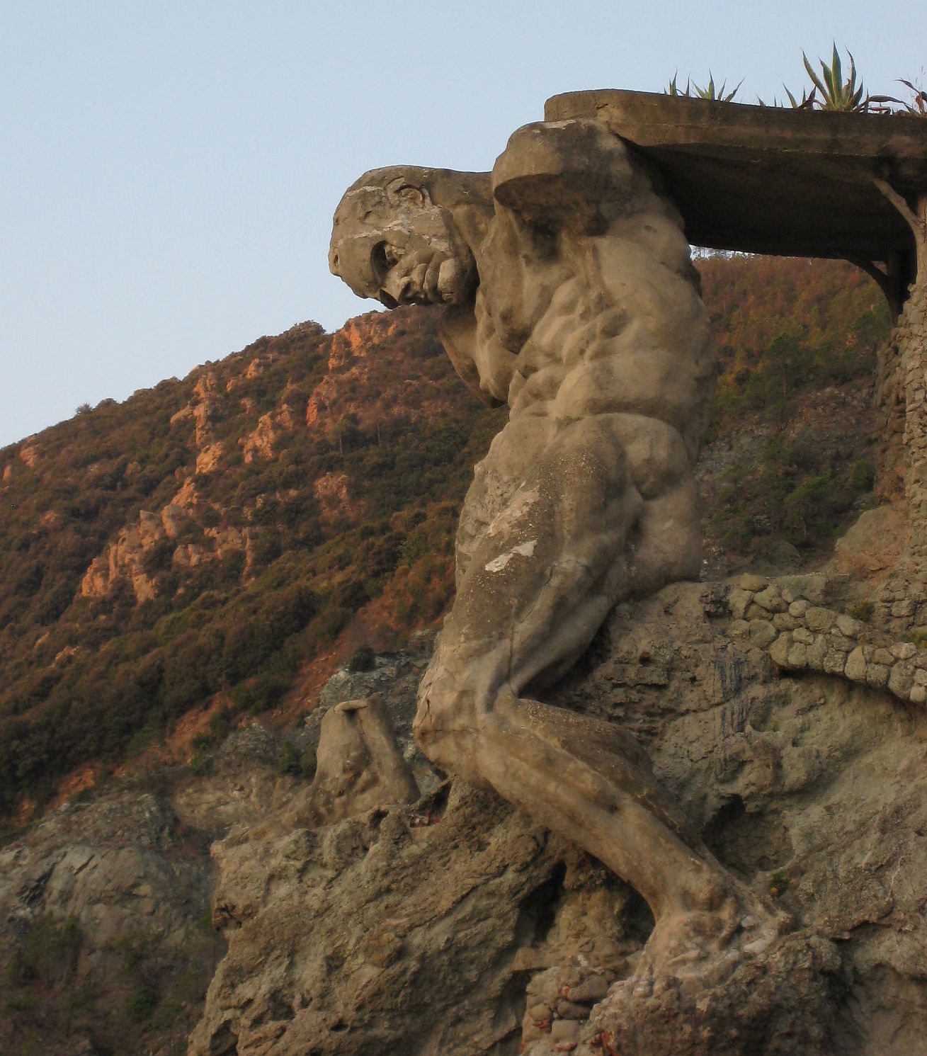 One of the curiosities of Monterosso that I came upon on one of my morning walks along the town path that heads north was the famous ‘Il Gigante’. Just past the northern end of the beach is a rocky outcrop and back in 1910, the Italian sculptor Arrigo Minerbi built a statue of Neptune from concrete with a trident and a gigantic shell on his head. Unfortunately war and weather has not been kind to this image of Neptune who is today armless and without his trident and conch, struggling to escape from the grip of the rocks that still hold him bound. Towards the end of World War II, Monterosso was part of Mussolini’s territory and so it was a target for allied bombing and Neptune was one of the victims. Heavy seas since then have also not been kind to both Neptune and his home village of Monterosso.