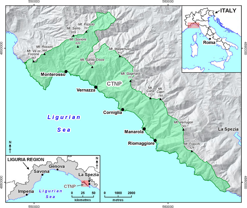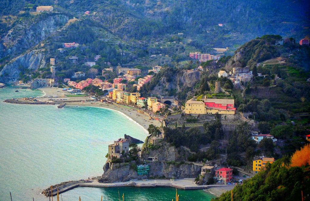 The Cinque terra (the “Five Lands”) is a rugged coastline area of north-west Italy in the small region of Liguria. The region hugs the coastline of northern Italy until you cross the border into France. Genoa is the capital of this region and is about 88 kms north of Monterosso, the first of the five villages (or the last, depending on where you start from!) that make up the Cinque Terre. It is a popular tourist region, partly because the locals have been building terraces above their sea-side villages for many centuries and visitors feel like they are cut off from the cares of the rest of the world, locked between the sea, the wide sky and the rugged, rocky coastline. The area is very attractive for hikers that love the challenge of walking between the villages; along the coastline if the tracks are open or the longer ways over the mountains.